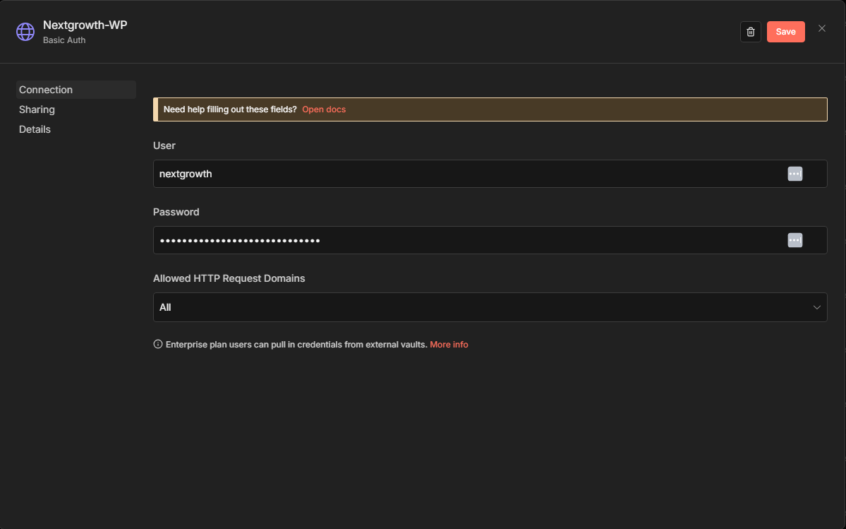 Password: xxxx xxxx xxxx xxxx xxxx xxxx (24-character key with or without spaces)WordPress accepts the Application Password with or without spaces, but n8n’s HTTP Request node works best when you remove spaces: